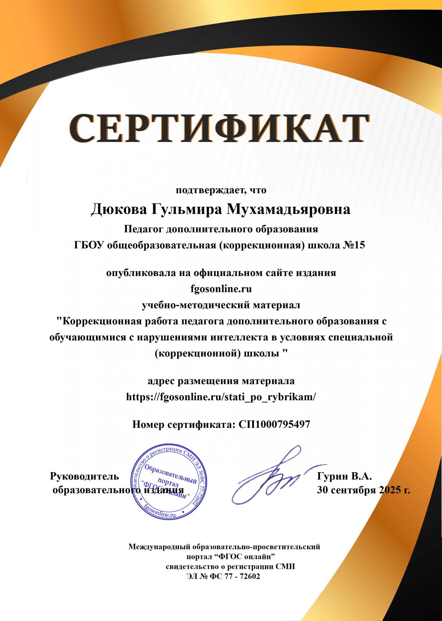 СВИДЕТЕЛЬСТВО О ПУБЛИКАЦИИ МЕТОДИЧЕСКОЙ РАЗРАБОТКИ В СЕТЕВОМ ИЗДАНИИ, 2025 Г.
