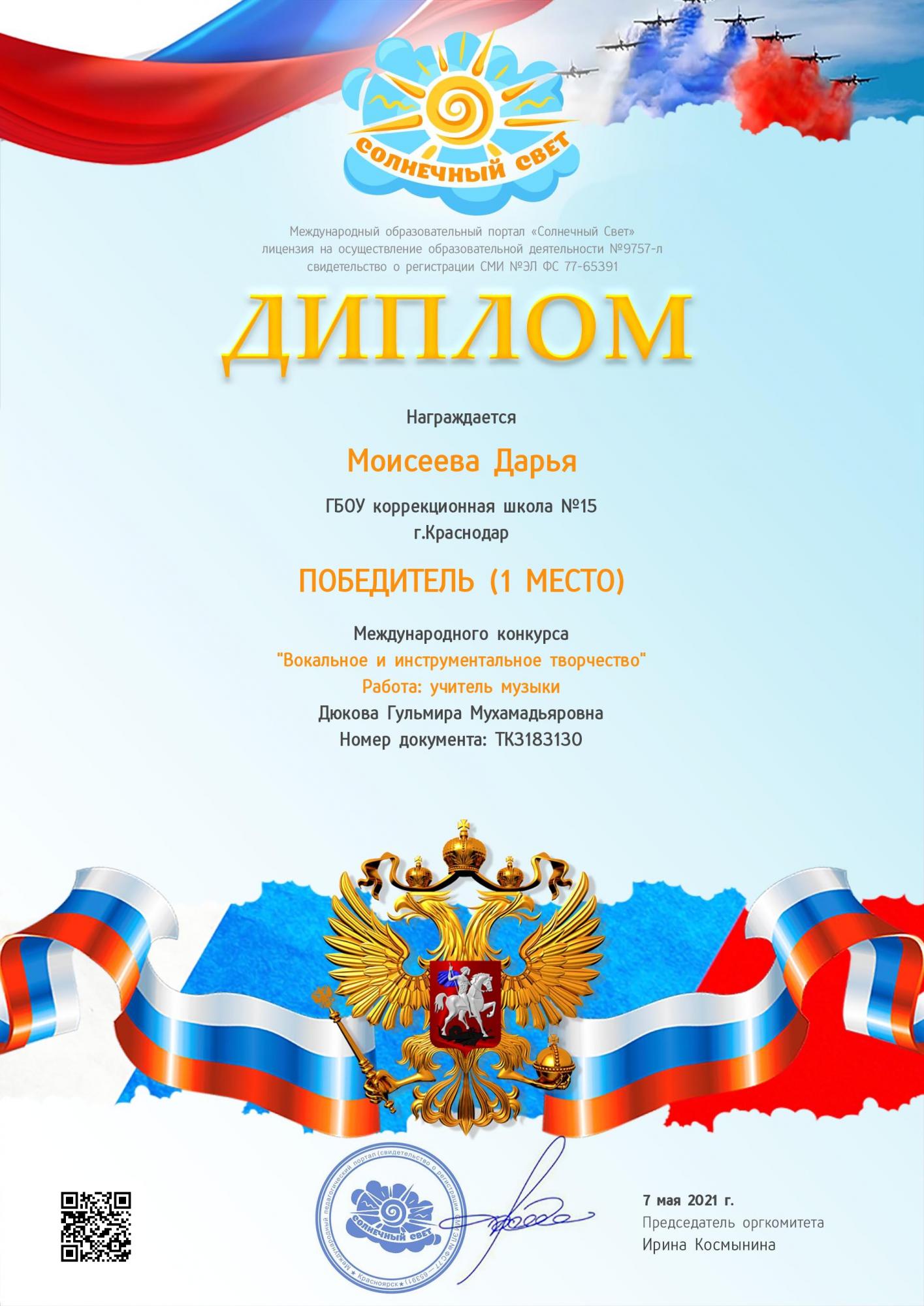 Диплом Моисеевой Дарьи (сетевое издание), 2021 г.