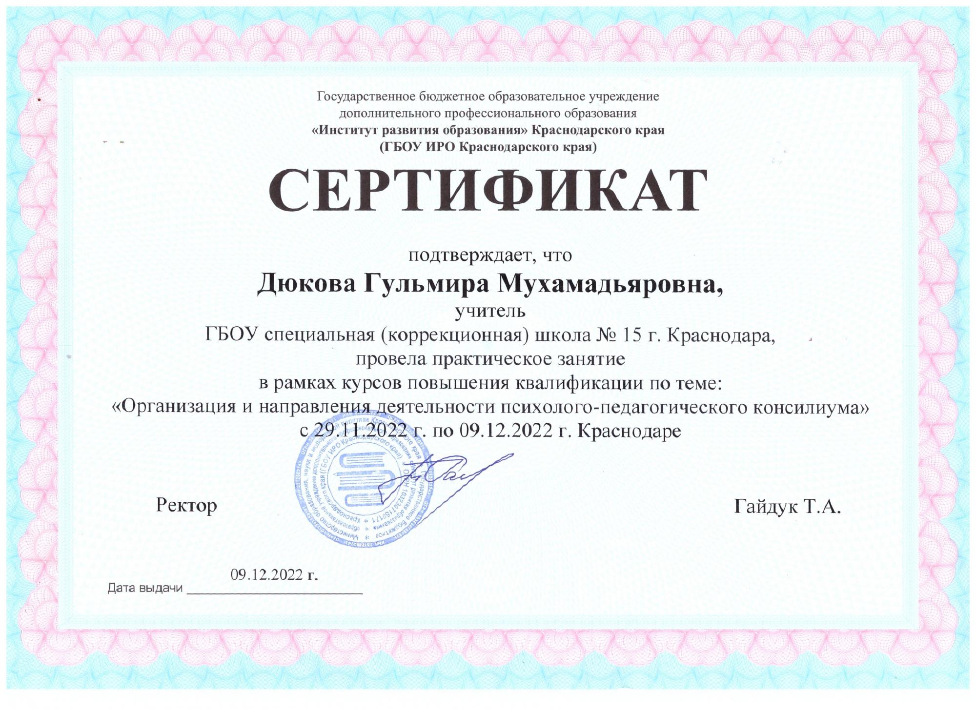 Сертификат ГБОУ ИРО КК от проведении практического занятия 09.12.2022 г.