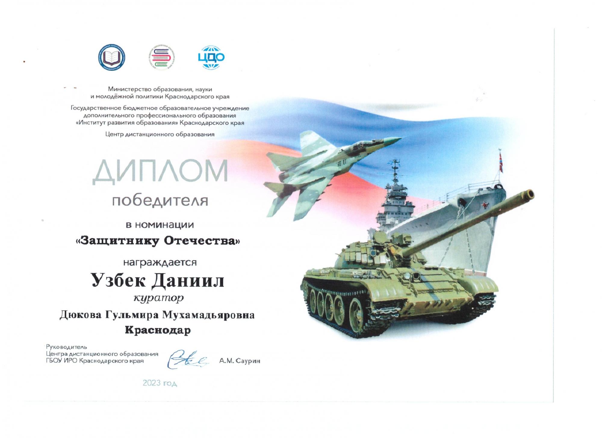 Диплом Узбека Даниила (ГБОУ ИРО КК), 2023 г.