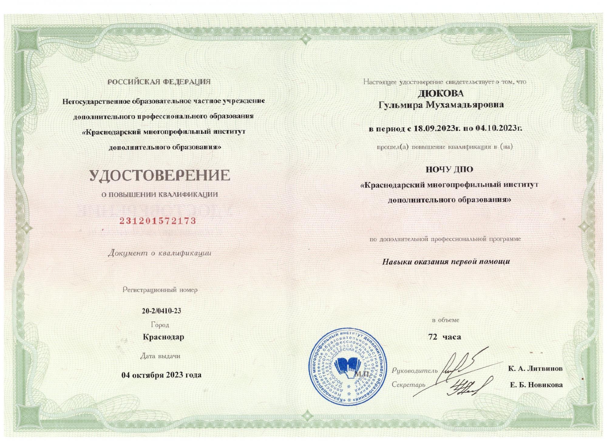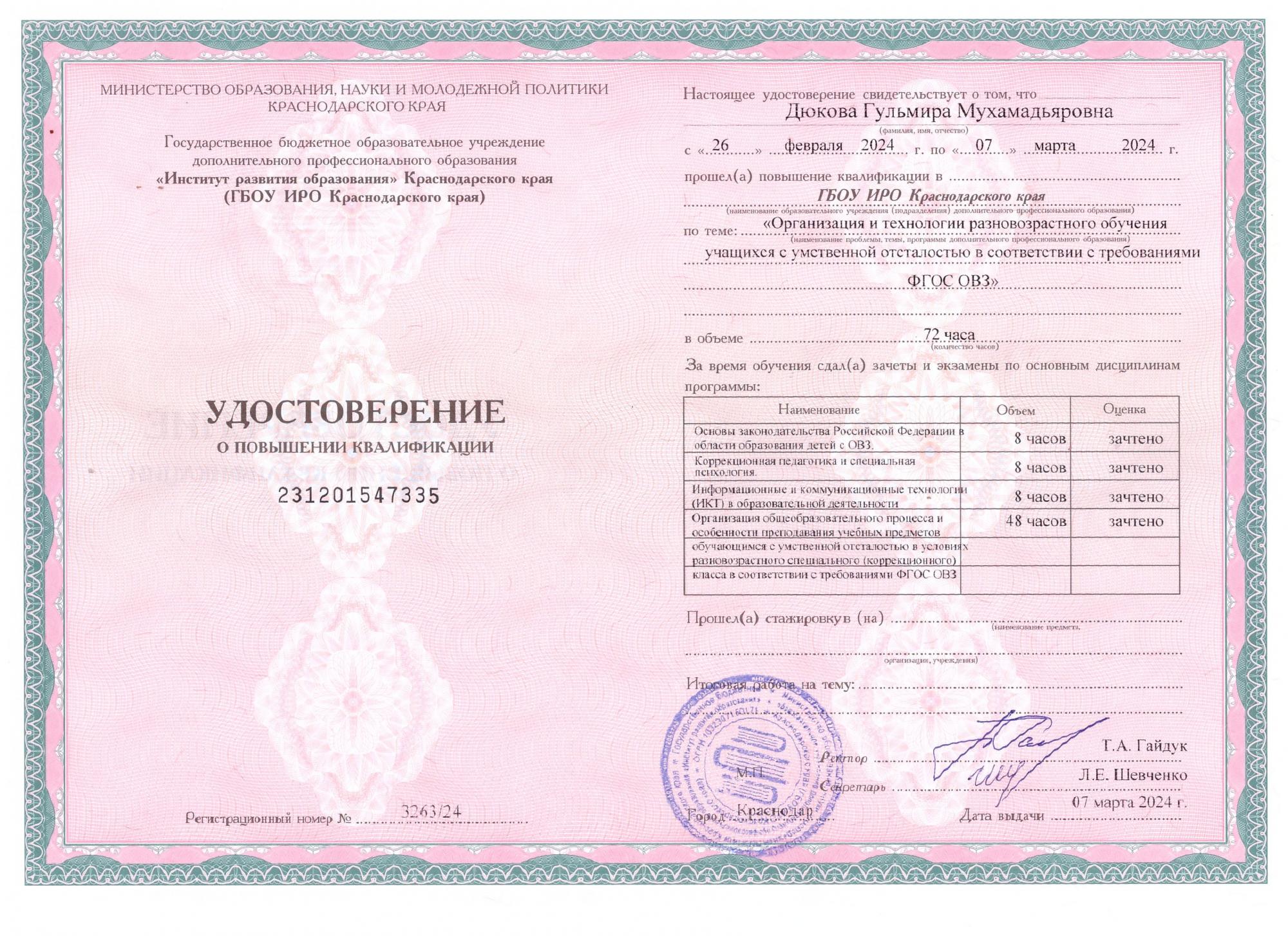 УДОСТОВЕРЕНИЕ О ПОВЫШЕНИИ КВАЛИФИКАЦИИ от 07.03.2024 Г.