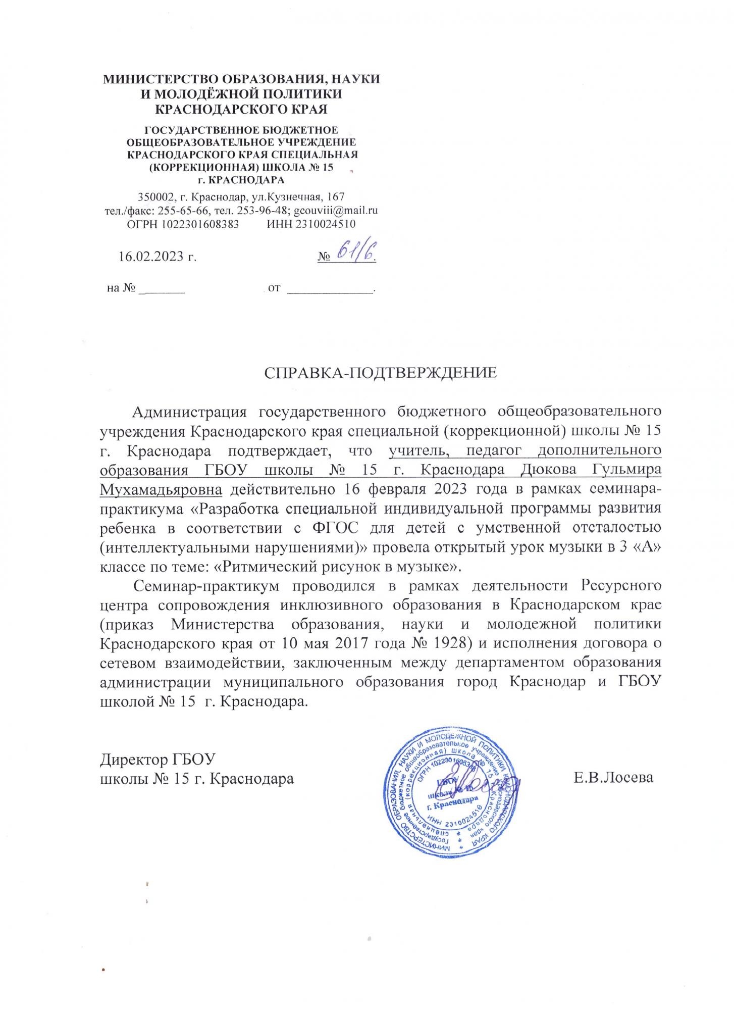 педагог дополнительного образования ГБОУ школы № 15 г. Краснодара